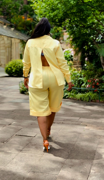 * Easy, breezy, and quietly confident. The Golden Bermuda Shorts Set is designed for slow days and soft moments, where comfort leads and style follows naturally. The relaxed shirt drapes effortlessly with an open slit on the back, paired with easy-fit shorts that move with you.